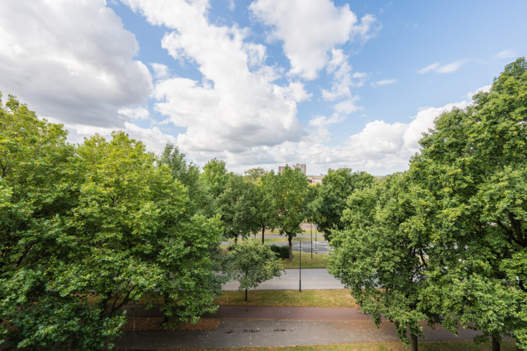De royale woonkamer van ca. 30 m² is opvallend licht dankzij grote raampartijen. Via de schuifpui heeft u toegang tot het ruime balkon op het westen – een heerlijke plek om te ontspannen met uitzicht op veel groen. De indeling van de woonkamer biedt diverse mogelijkheden voor zit- en eetgedeeltes.