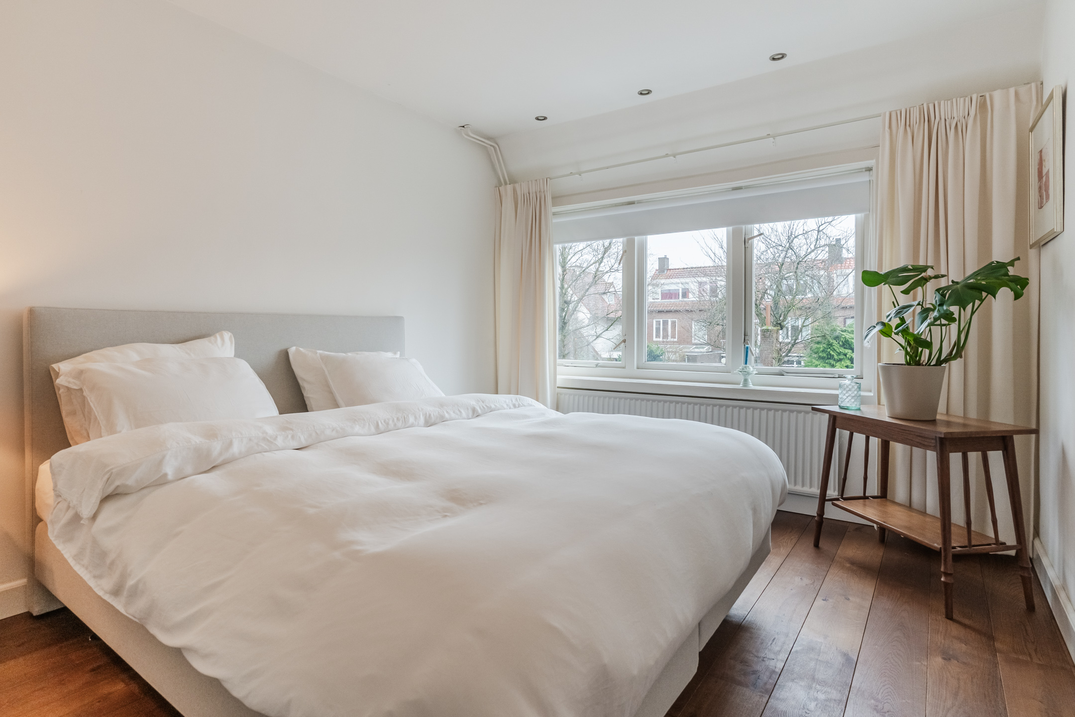 De overloop biedt toegang tot 2 slaapkamers en de badkamer. De royale en keurig verzorgde slaapkamers zijn voorzien van grote raampartijen die zorgen voor volop lichtinval. De gemoderniseerde badkamer is uitgerust met een ligbad, een separate douchecabine en een wastafelmeubel met dubbele wastafel.