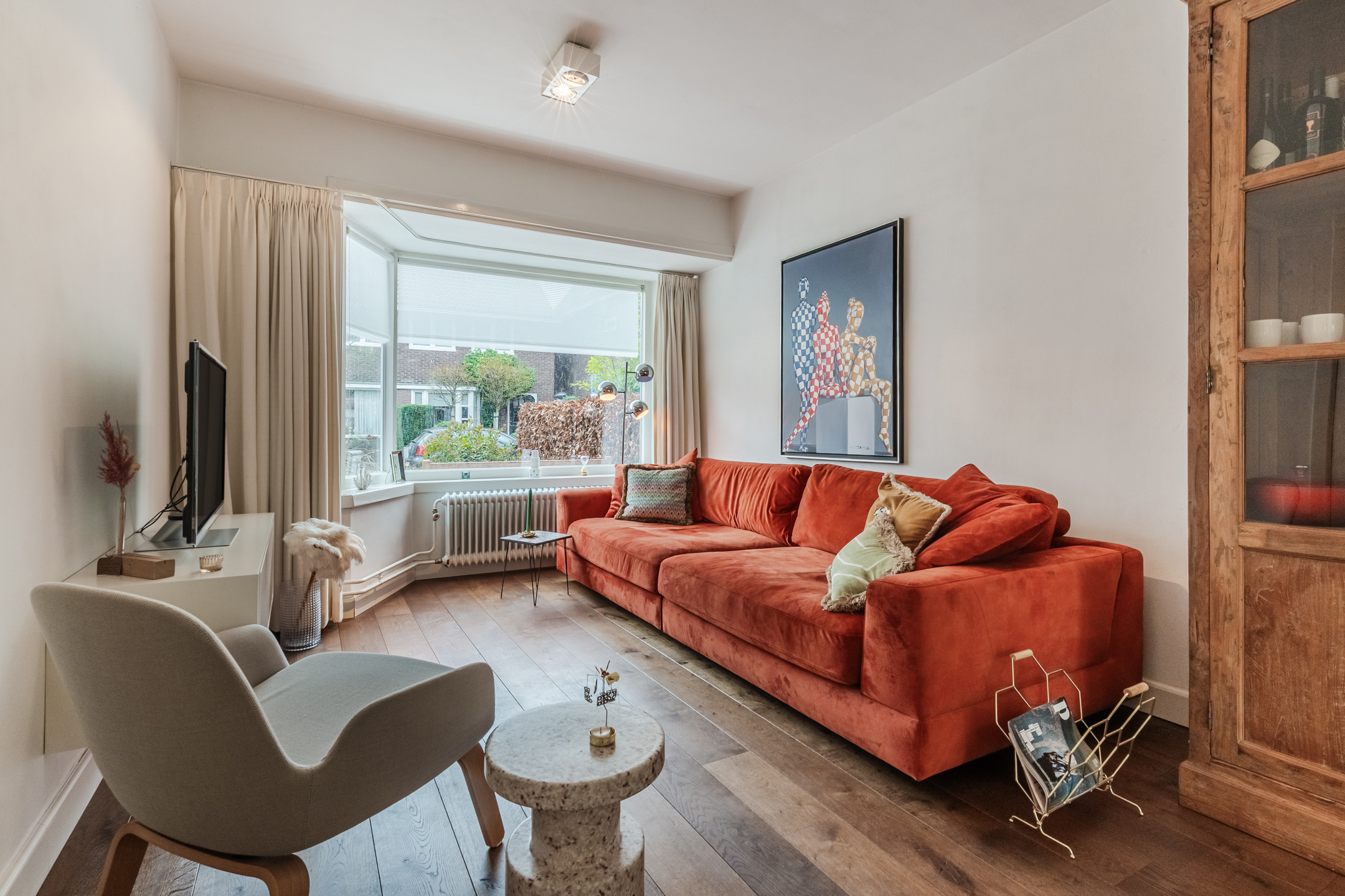 – Gemoderniseerd naar het comfort van deze tijd, echter zijn diverse authentieke kenmerken bewaard gebleven (travertin vloer, paneeldeuren en erker);