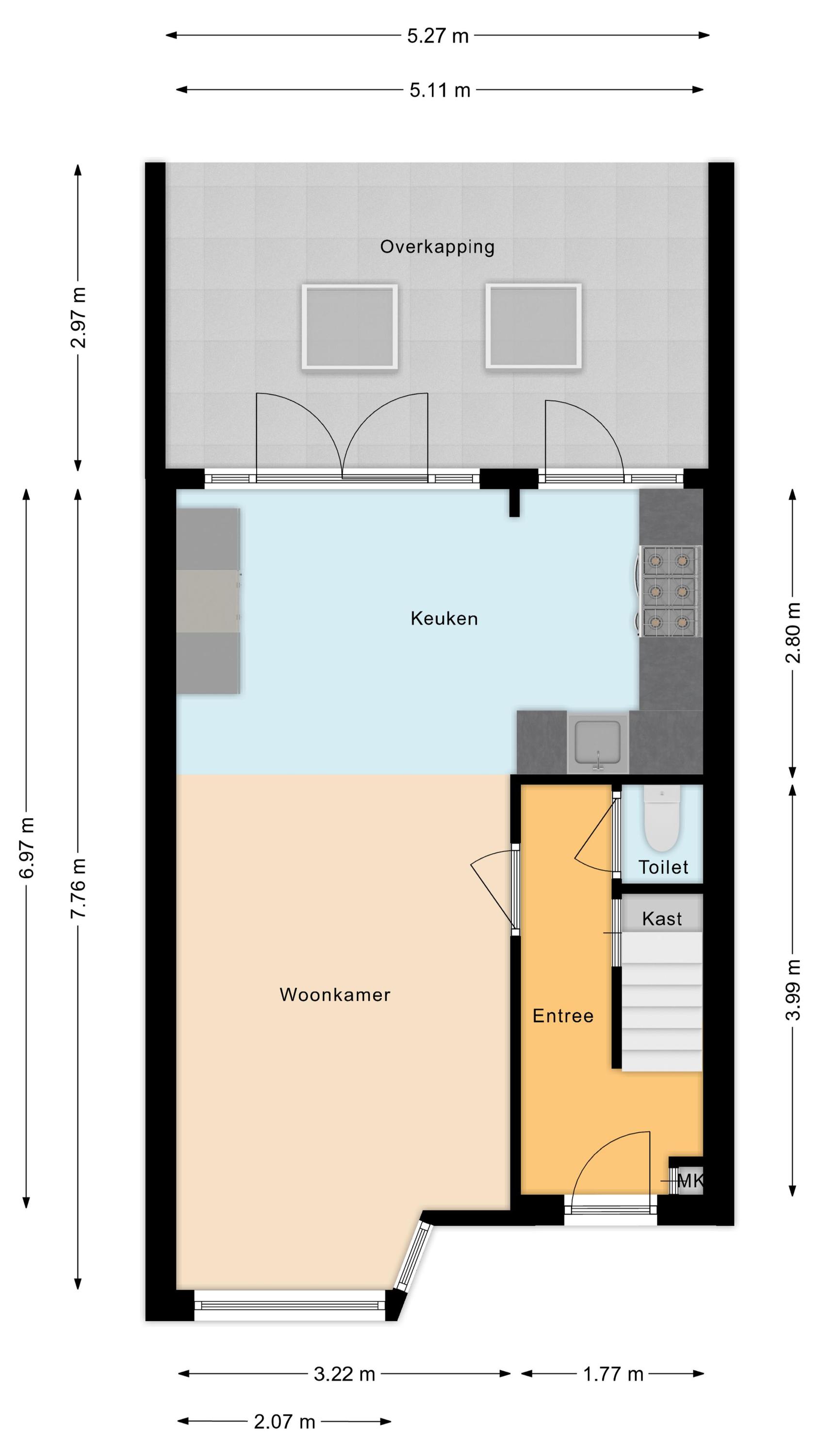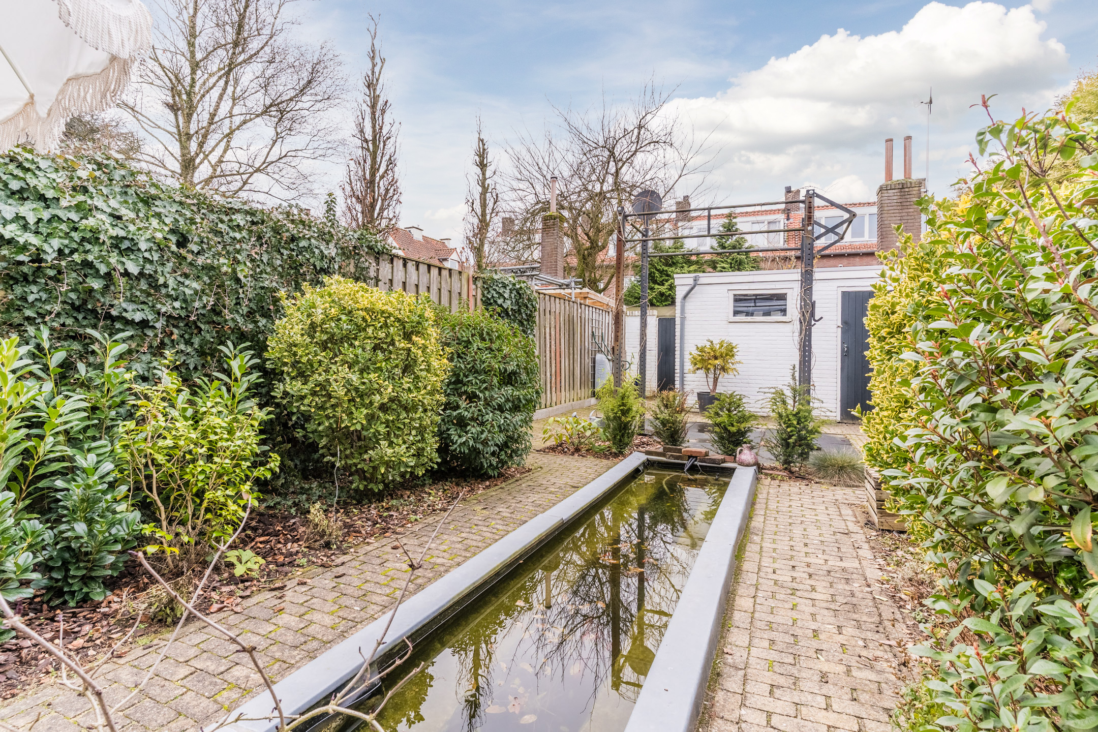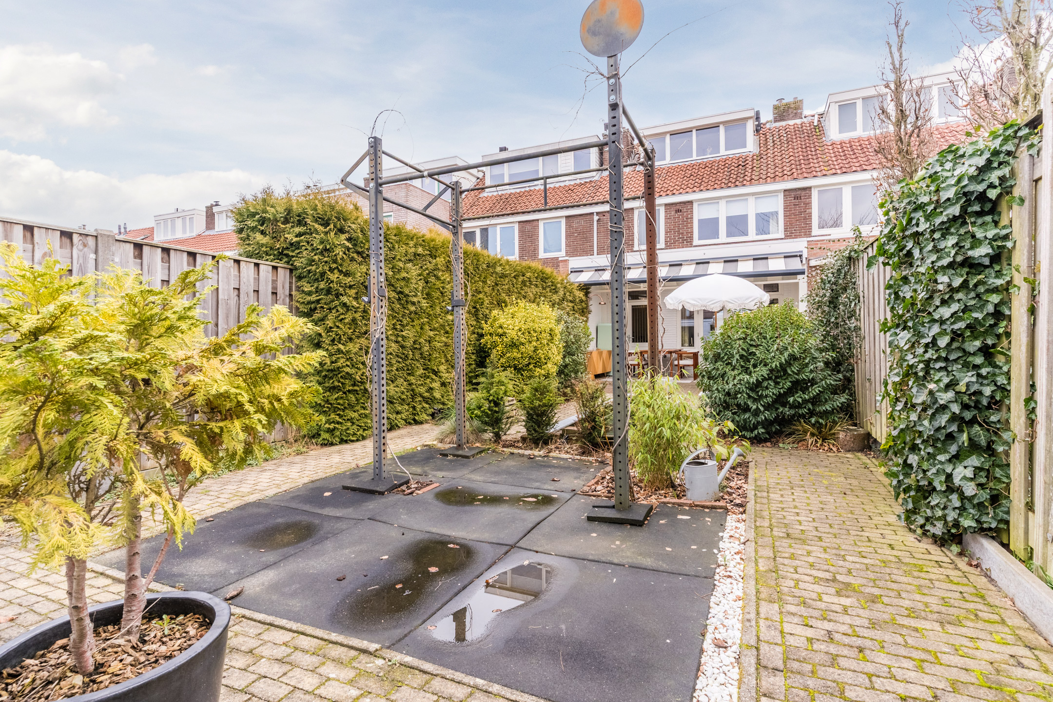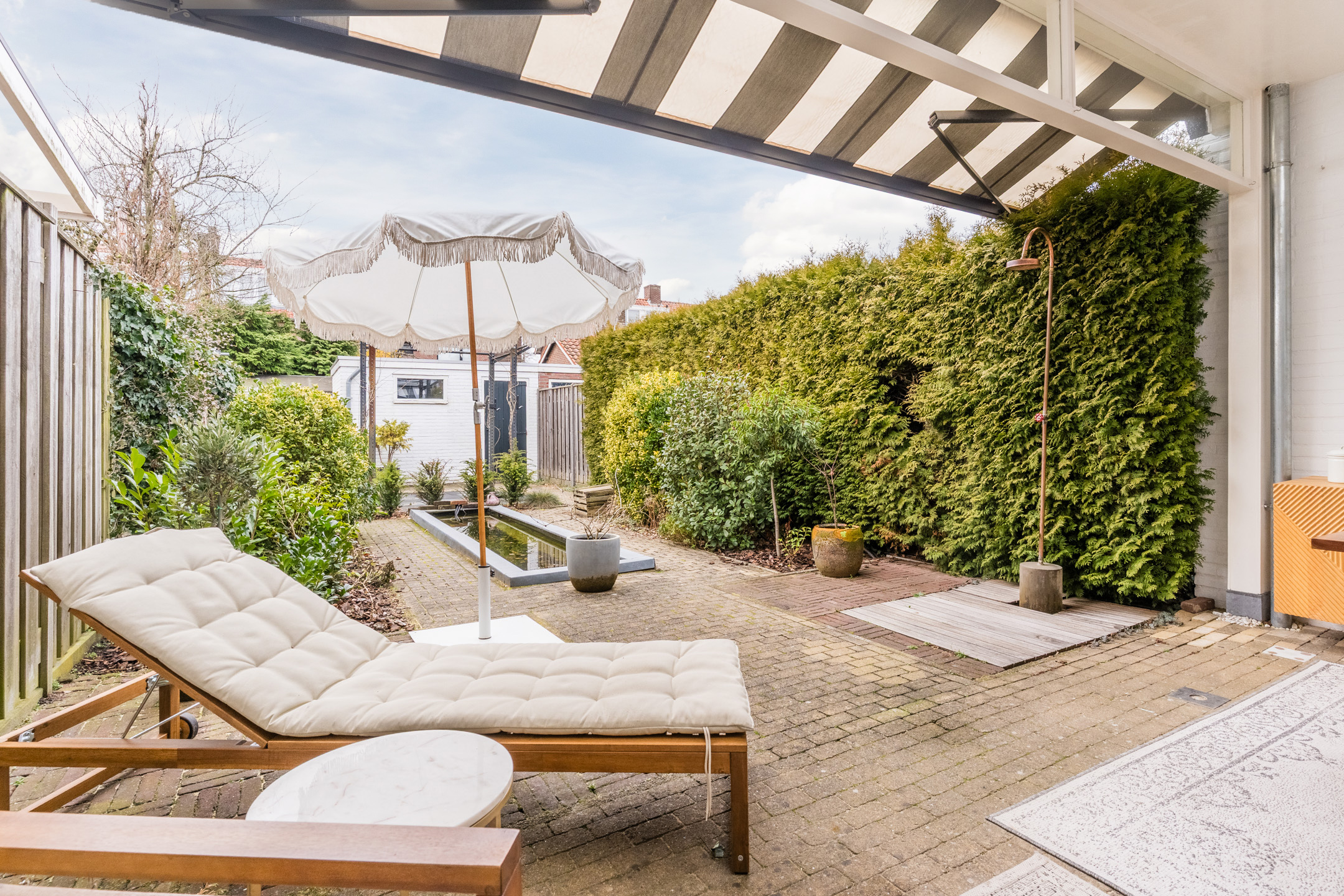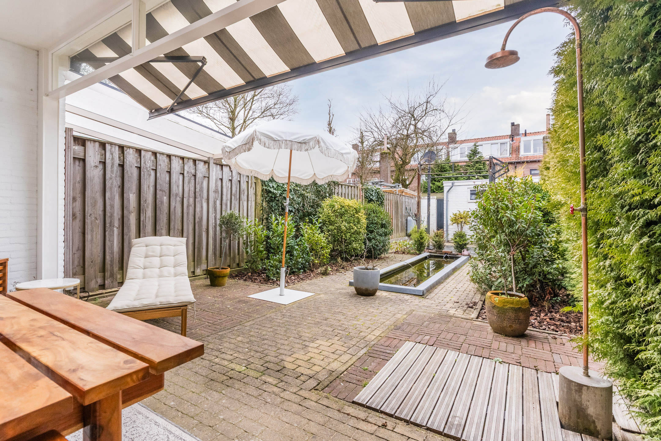 – Diepe en privacy biedende achtertuin op het zuidwesten van circa 18 meter diep met luxe overkapping;