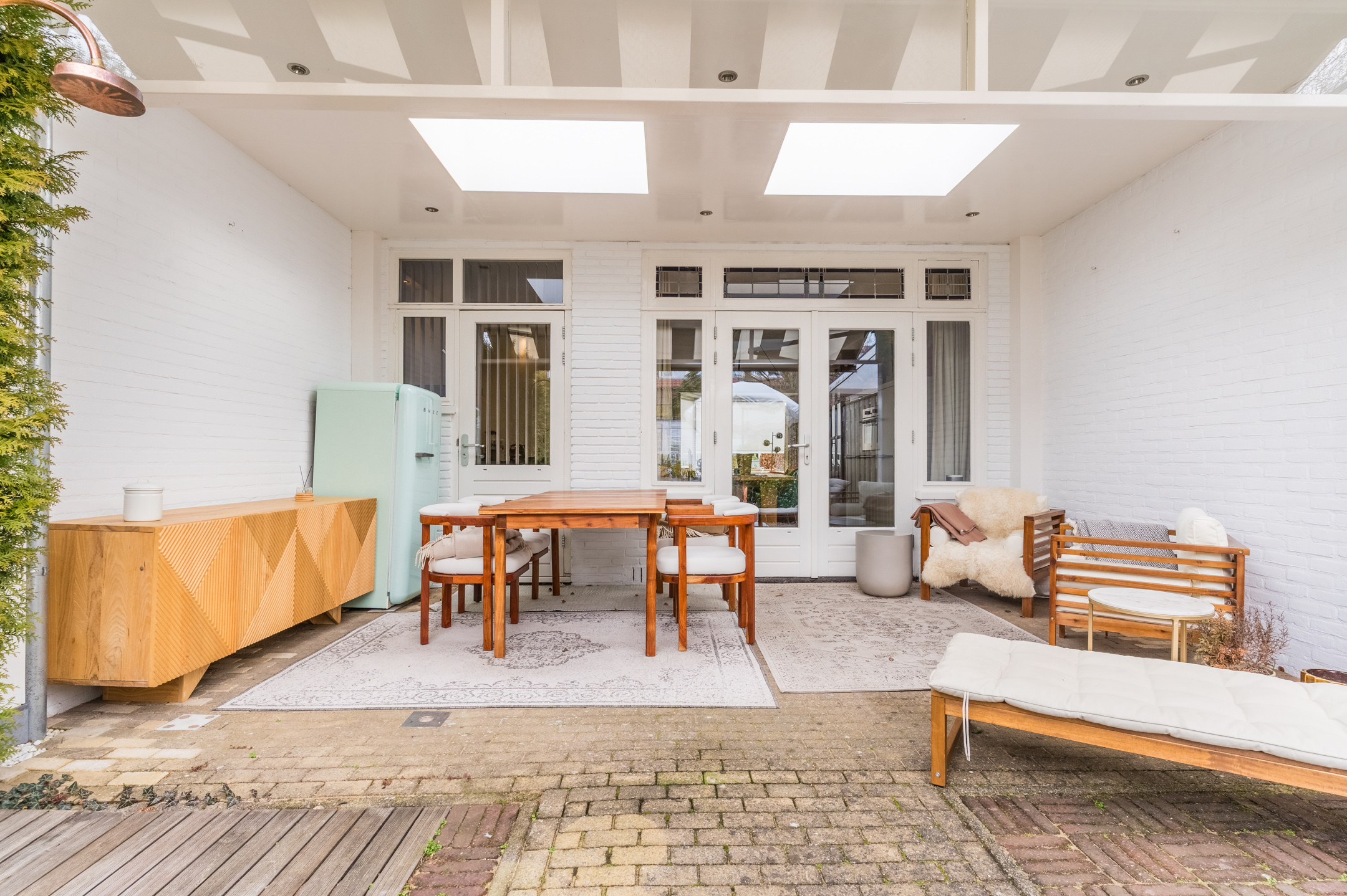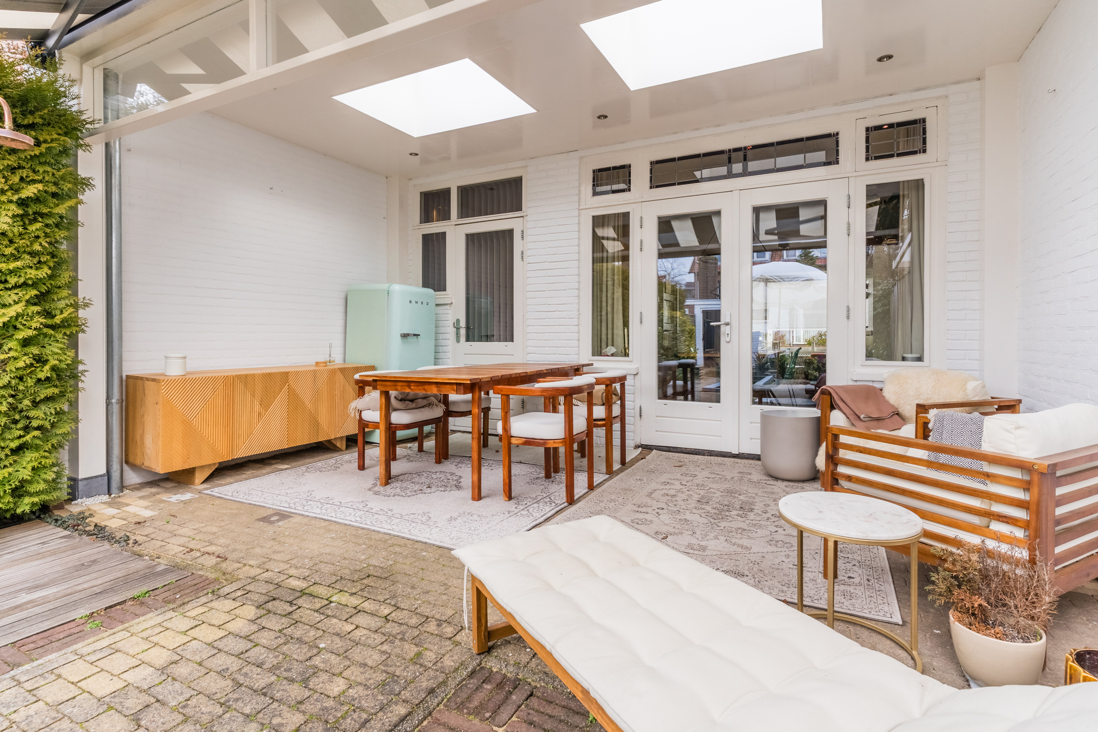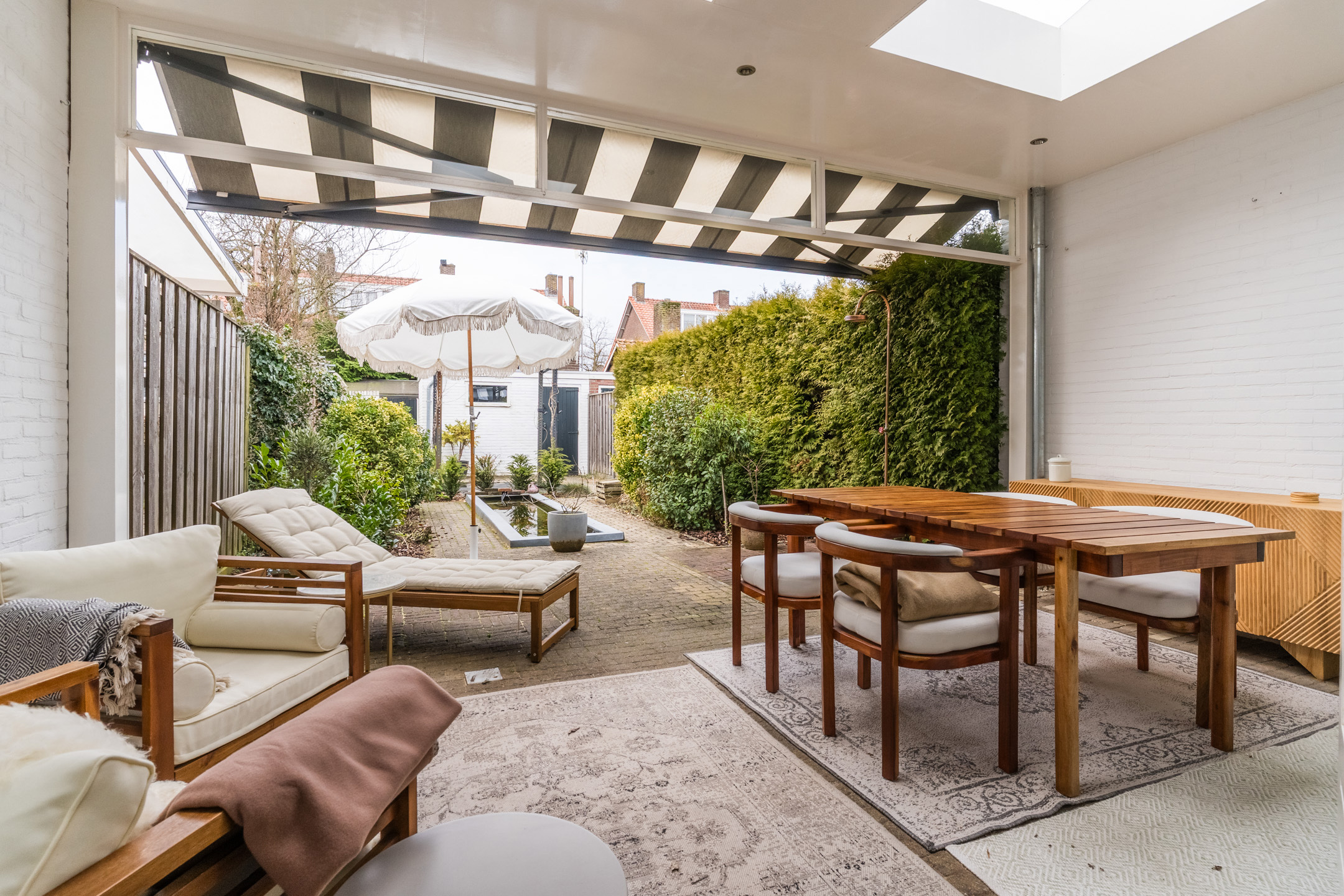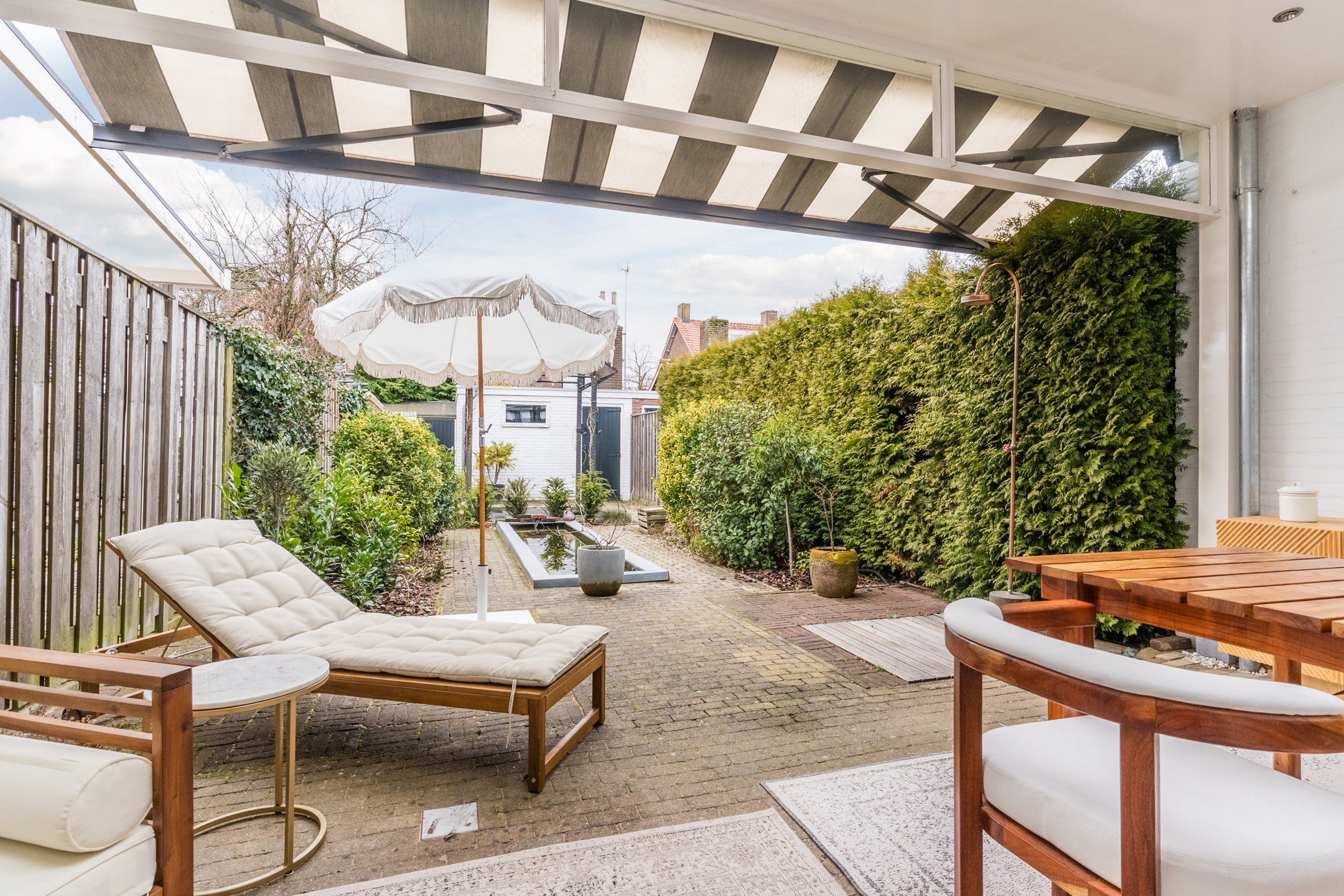 Een absolute plus is de circa 18 meter diepe achtertuin met veel privacy op het zuidwesten — een heerlijke plek om tot rust te komen en volop van het buitenleven te genieten mede dankzij de luxe overkapping.