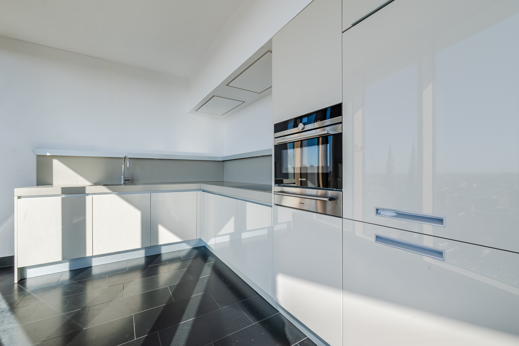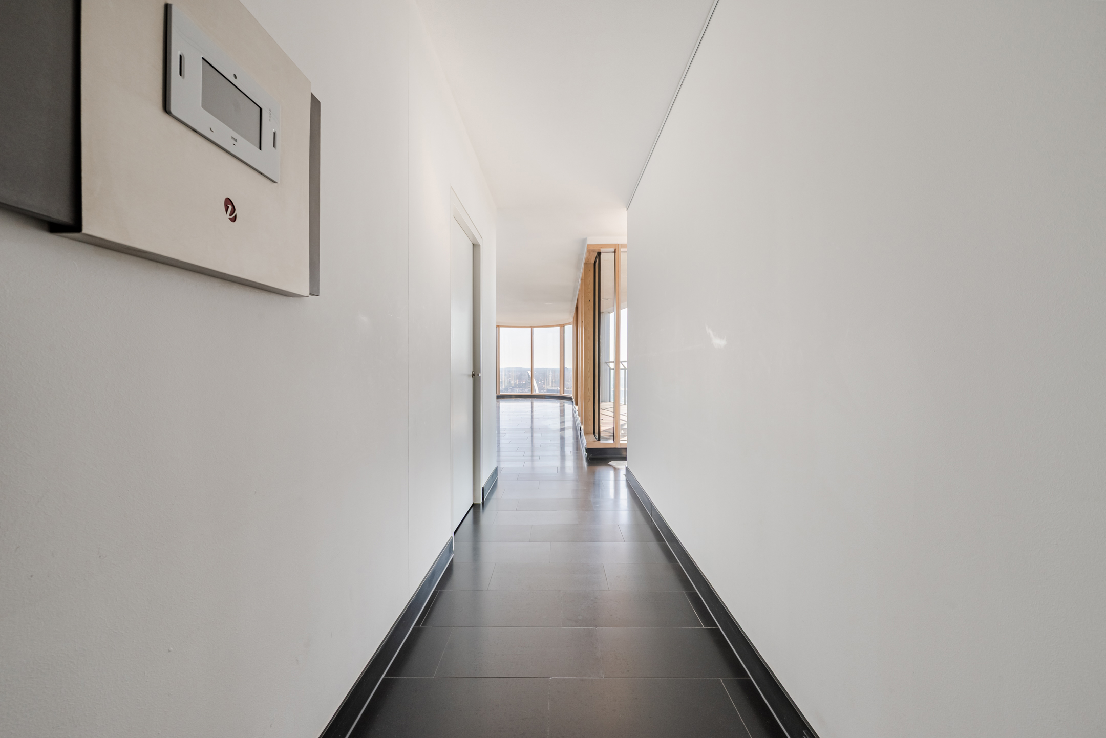 Toegang tot slechts 2 appartementen. Entree. Nagenoeg het gehele appartement is voorzien van een hoogwaardige natuurstenen vloer met vloerverwarming. De schitterende woonkamer is voorzien van grote raampartijen waardoor de ruimte geniet van optimaal lichtinval! Uitzicht is waar het hier om draait! De kamer is dermate royaal dat er meerdere manieren zijn om deze in de delen. De dubbele openslaande deuren bieden toegang tot het riante balkon met een ligging op het zuidwesten. De keuken biedt eveneens een fraai uitzicht. De moderne en luxe keukenopstelling (L-vorm) van het exclusieve Italiaanse merk “Varenna” is voorzien van een composiet aanrechtblad, volop bergruimte, inductie kookplaat, afzuigkap, vaatwasser, combi-oven, warmhoudlade, koelkast en vriezer.