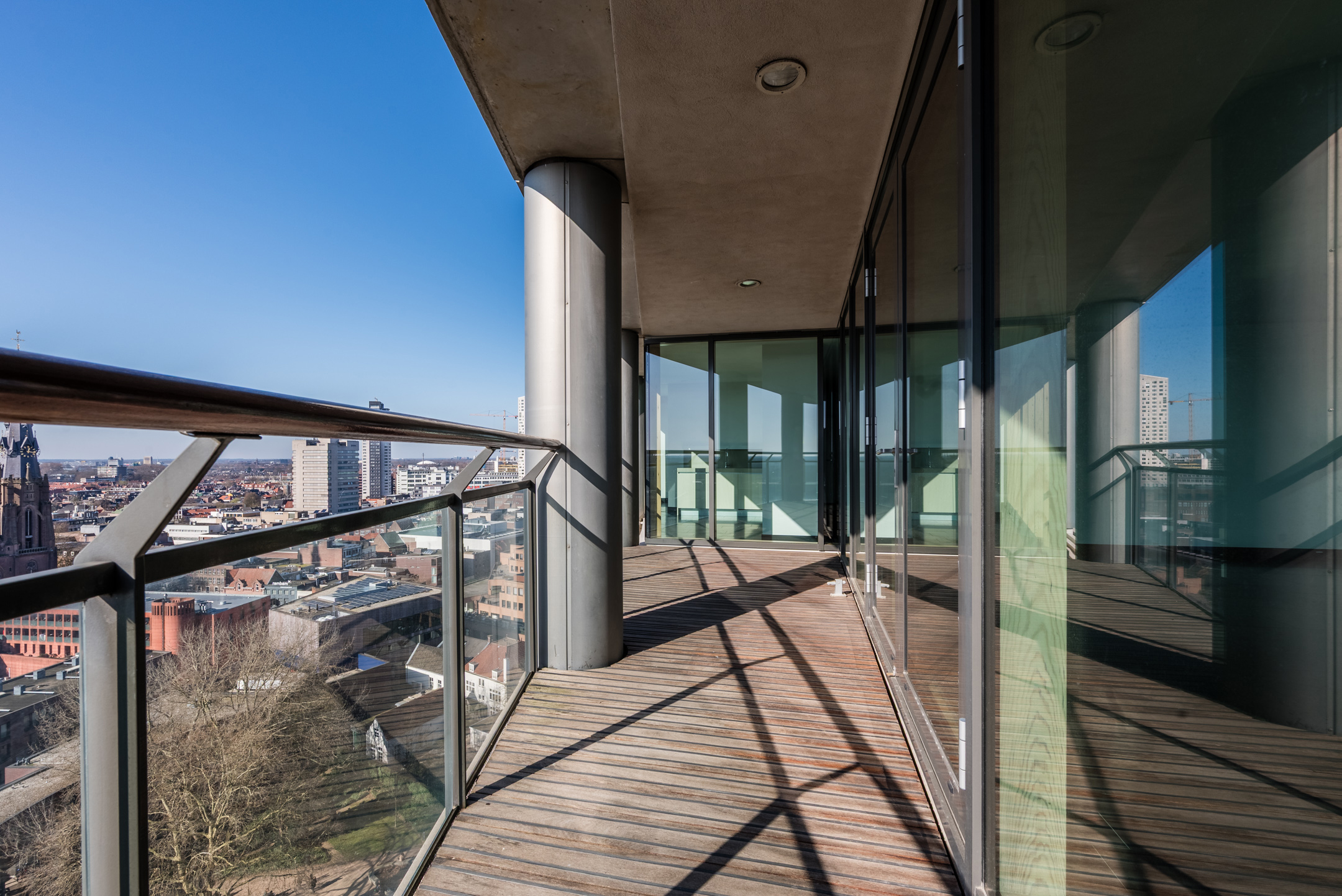 In the center of Eindhoven in the iconic Vestedatoren, this spacious and exclusive 2-bedroom apartment is located, with a spacious balcony on the southwest, private parking and because of its location on the 14th floor with a fantastic view over the city and beyond! This apartment has large and unique curved windows, high ceilings, spacious living areas and a nice layout. Of course all with a modern finish, ready to move in. The city center is literally located at the foot of the apartment complex.