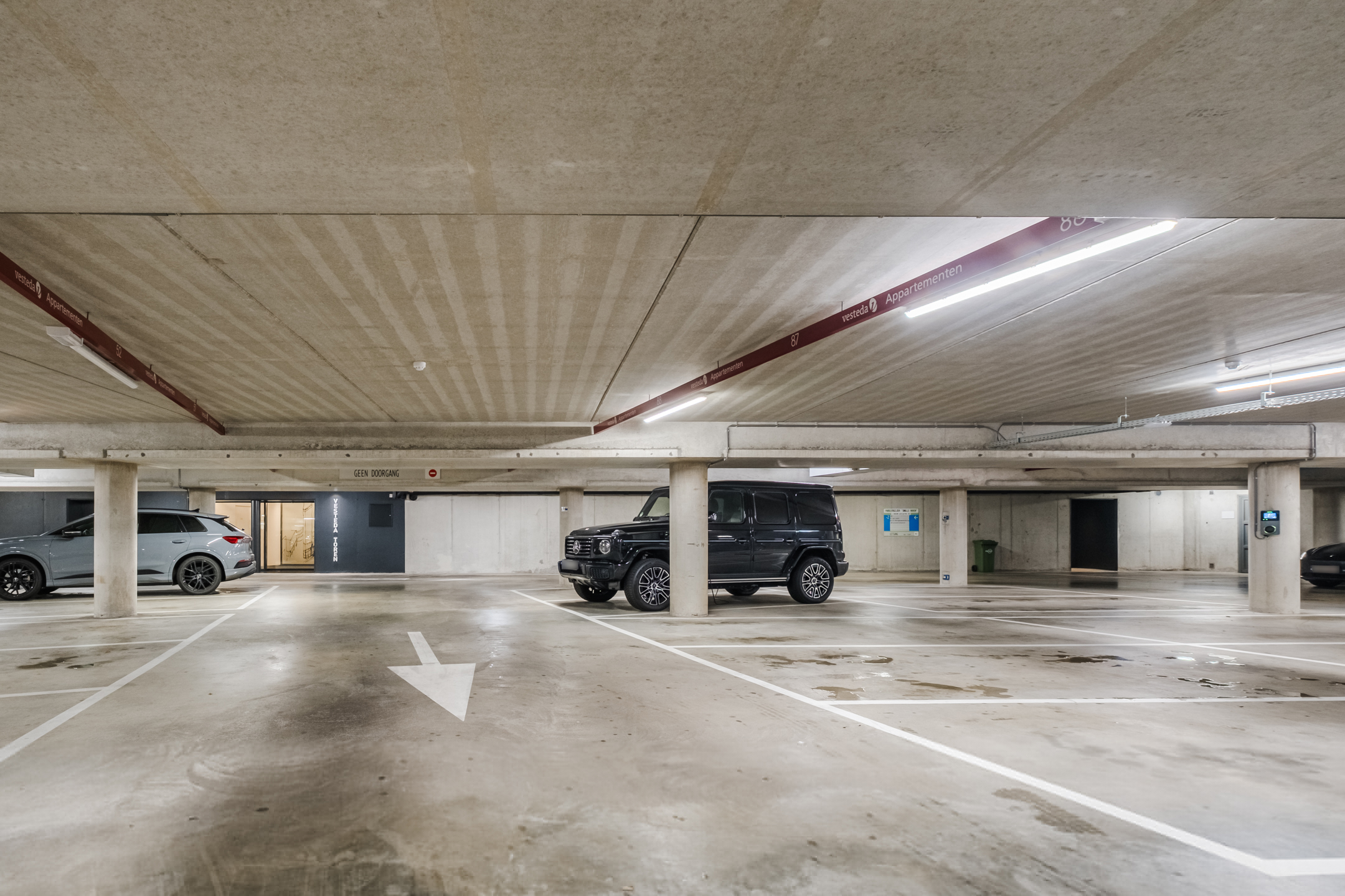 In de afgesloten parkeergarage bevindt zich een eigen berging en de privé parkeerplaats welke tot het appartement behoort.