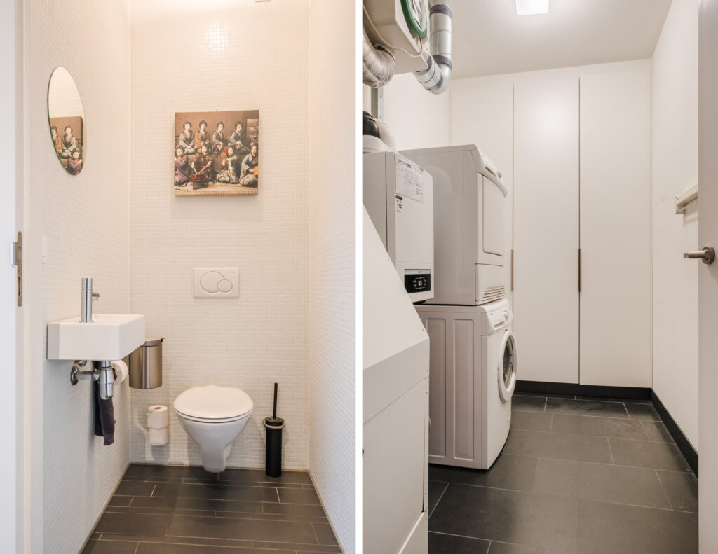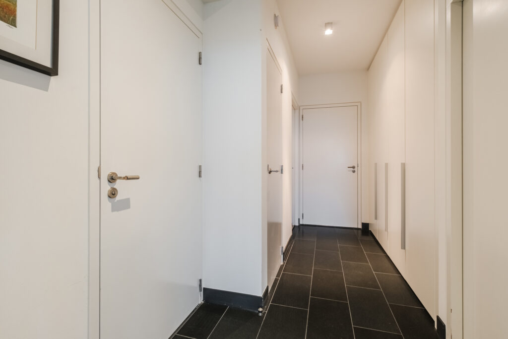 Het appartement is tot in detail perfect afgewerkt, met een hoogwaardige natuurstenen vloer (Chinese basalt) voorzien van vloerverwarming, vaste airco-installaties én een domotica-systeem dat luxe en gemak moeiteloos samenbrengt.