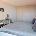 De slaapkamer is ontworpen als uw persoonlijke retreat: licht, rustgevend en voorzien van maatwerk kasten. Vanuit hier loopt u direct de moderne badkamer binnen—compleet met ligbad, inloopdouche, dubbele wastafel en extra toilet. Comfort in hoofdletters.
