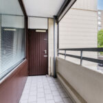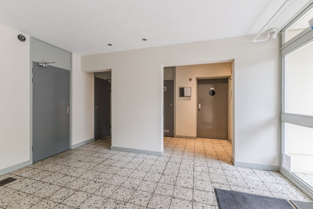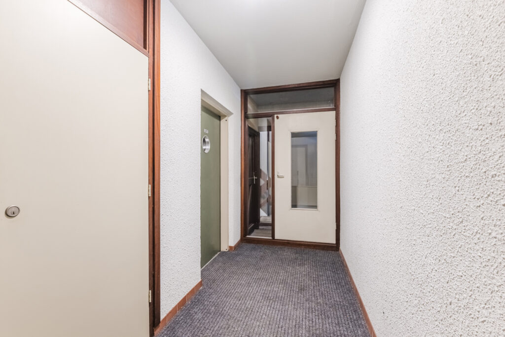 Het portiek geeft toegang tot 2 appartementen, de meterkasten en de extra bergkasten (de meterkast en de extra bergkast bevinden zich in het portiek).