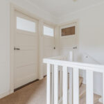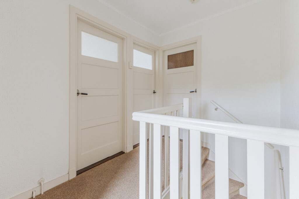 Middels een vaste trap komt u op de overloop die toegang geeft tot drie slaapkamers. De beide slaapkamers aan de achterzijde hebben een vaste wastafel en een van de slaapkamers heeft ook een balkon waar de eerste lentezon geconsumeerd kan worden. Vanuit de slaapkamer aan de achterzijde is ook de bergzolder toegankelijk. Hier kan een vierde slaapkamer gerealiseerd worden. Aan de voorzijde van de woning bevindt zich de derde slaapkamer en tevens de badkamer die voorzien is van een ligbad, separate inloopdouche, vaste wastafel en een toilet.