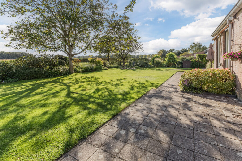 Liefhebbers van paarden, schapen, kippen en andere dieren kunnen hun hart ophalen, want de woning is gelegen op een royaal perceel van circa 3.100 m2. In het verlengde van de met zorg aangelegde en onderhouden (achter)tuin, met beregening en een maai-robot, is een weiland waar ruimte genoeg is voor het houden van een of meerdere paarden en/of andere dieren.