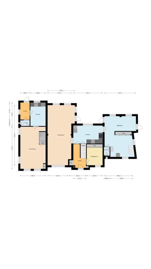 Entree met toegang tot een praktische werkkamer (eventueel te gebruiken als speelkamer of extra slaapkamer). Hier zit ook de meterkast die volledig is vernieuwd in 2019. De woonkeuken aan de achterzijde is uitermate zonnig. De keuken is in 2019 volledig vernieuwd en heeft een inductiekookplaat en Quooker. Ook de woonkamer is ruim, licht en zonnig. De tegelvloer in de keuken en woonkamer is voorzien van vloerverwarming. Vanuit de keuken is er toegang tot de ruime kelder. De bijkeuken is ruim en voorzien van een Wc met hangtoilet, wasmachine-aansluiting en veel opslagruimte met vaste kasten. Hier is volop plek om een aparte hobbyruimte te maken, zelfs met eigen toegang naar buiten. Vanuit de bijkeuken is er toegang naar de uitstekend onderhouden achtertuin. Vanuit de bijkeuken is er een trap naar een ruime bergzolder, waar ook de CV geplaatst is.