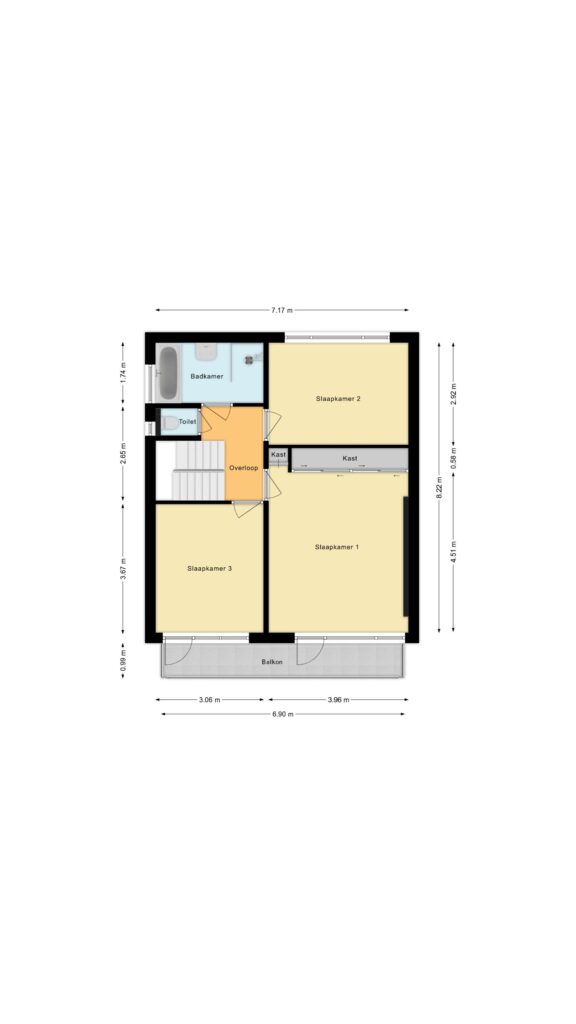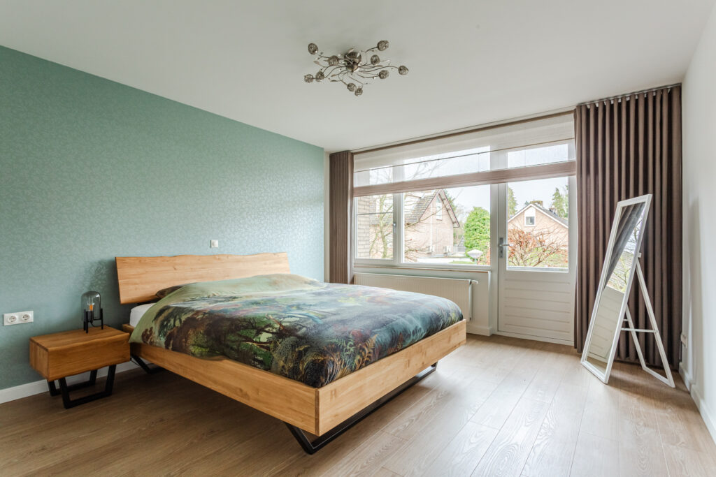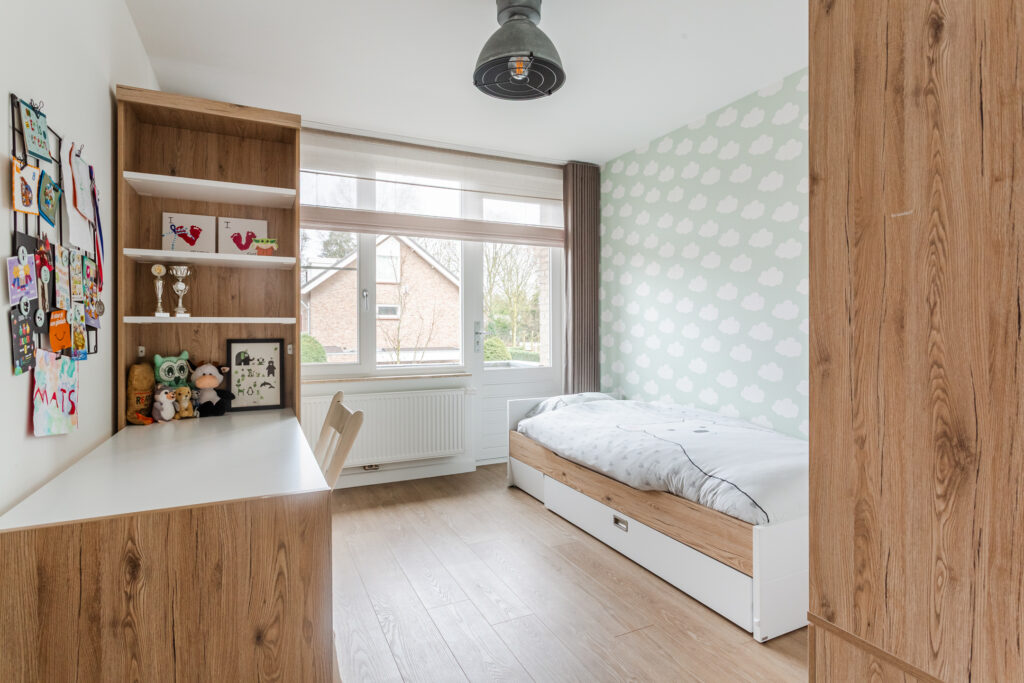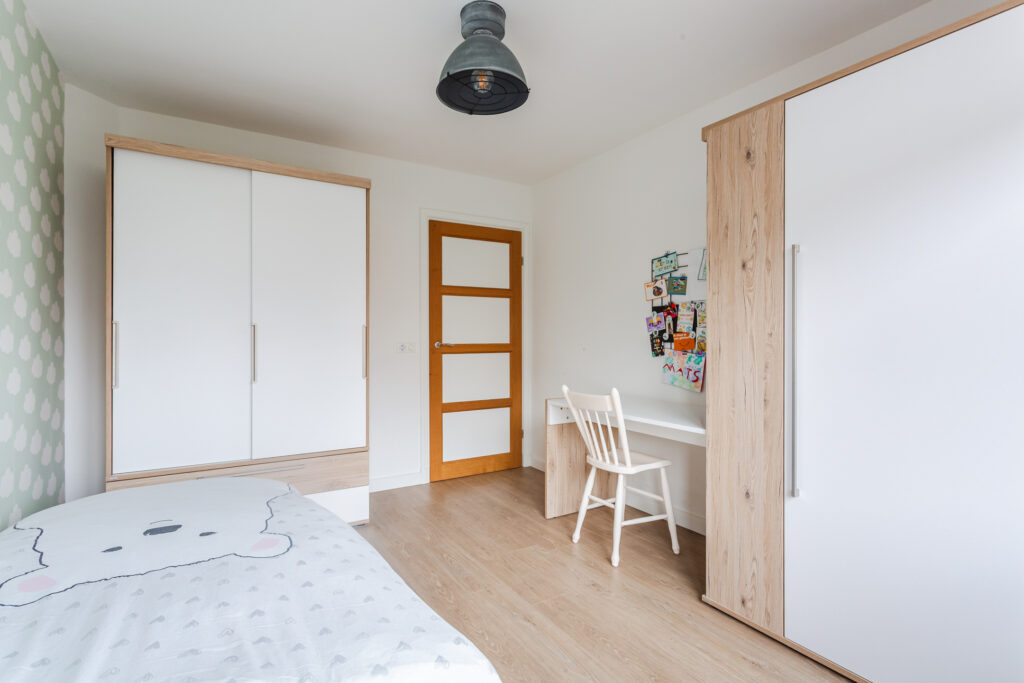 Op deze verdieping bevinden zich drie royale slaapkamers, allen afgewerkt met een nette PVC vloer. De ouderslaapkamer beschikt over een vaste schuifkastenwand en toegang tot een gezellig balkon aan de voorzijde van de woning.