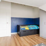 On the first floor there are three spacious bedrooms, separate toilet and a modern bathroom with bathtub and walk-in shower. The second floor offers two additional large bedrooms with dormers, a separate laundry room and extra storage space.