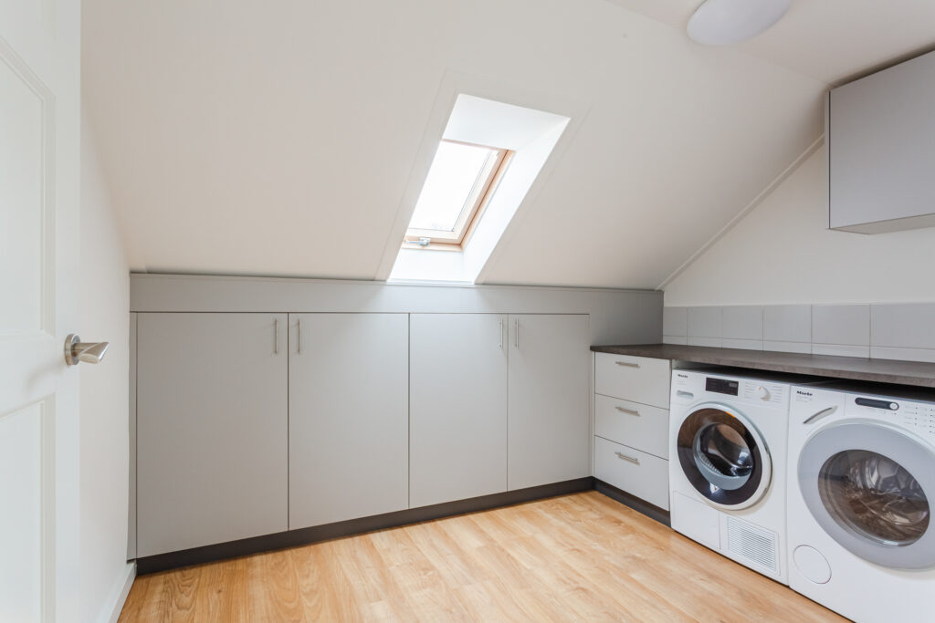 Via een vaste trap bereikt u deze verrassend ruime verdieping. Hier bevinden zich nog eens twee grote slaapkamers, beide voorzien van een dakkapel en een nette afwerking. Daarnaast is er een praktische wasruimte met op maat gemaakte kasten. Deze verdieping is voorzien van een airco-installatie welke kan verwarmen en koelen. Extra bergruimte nodig? Op deze verdieping bevindt zich nog een ruime bergzolder.