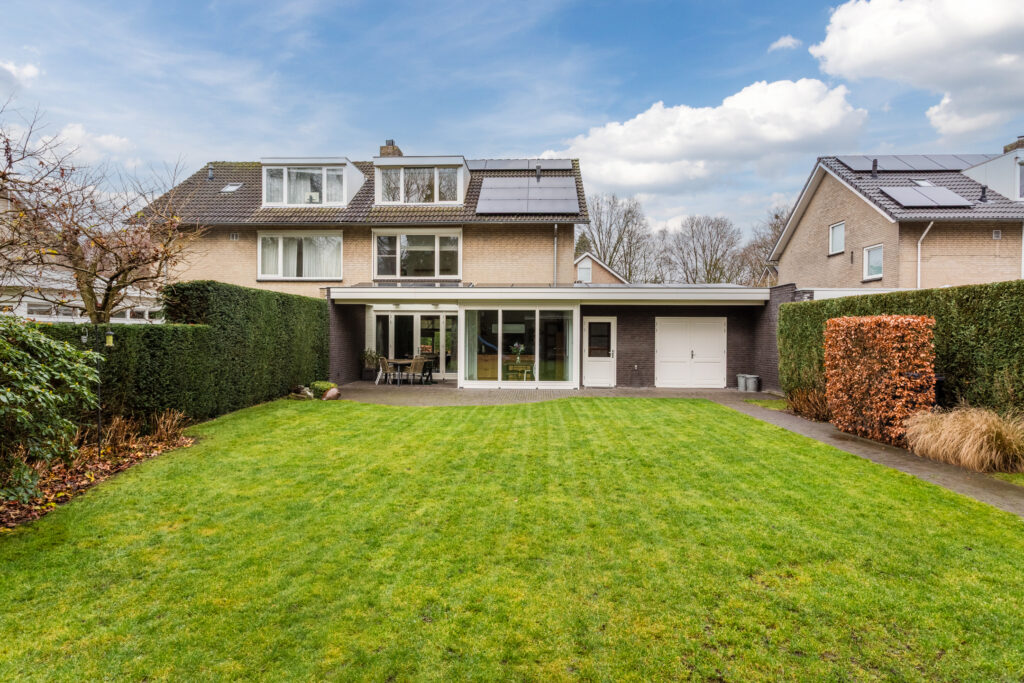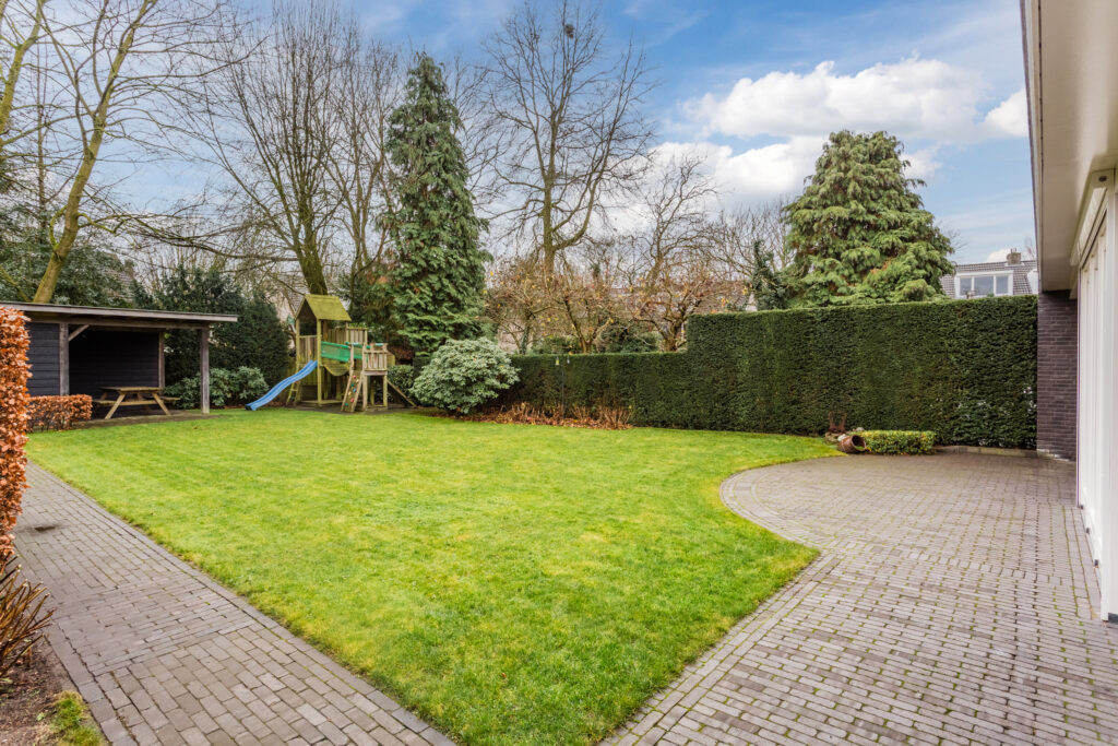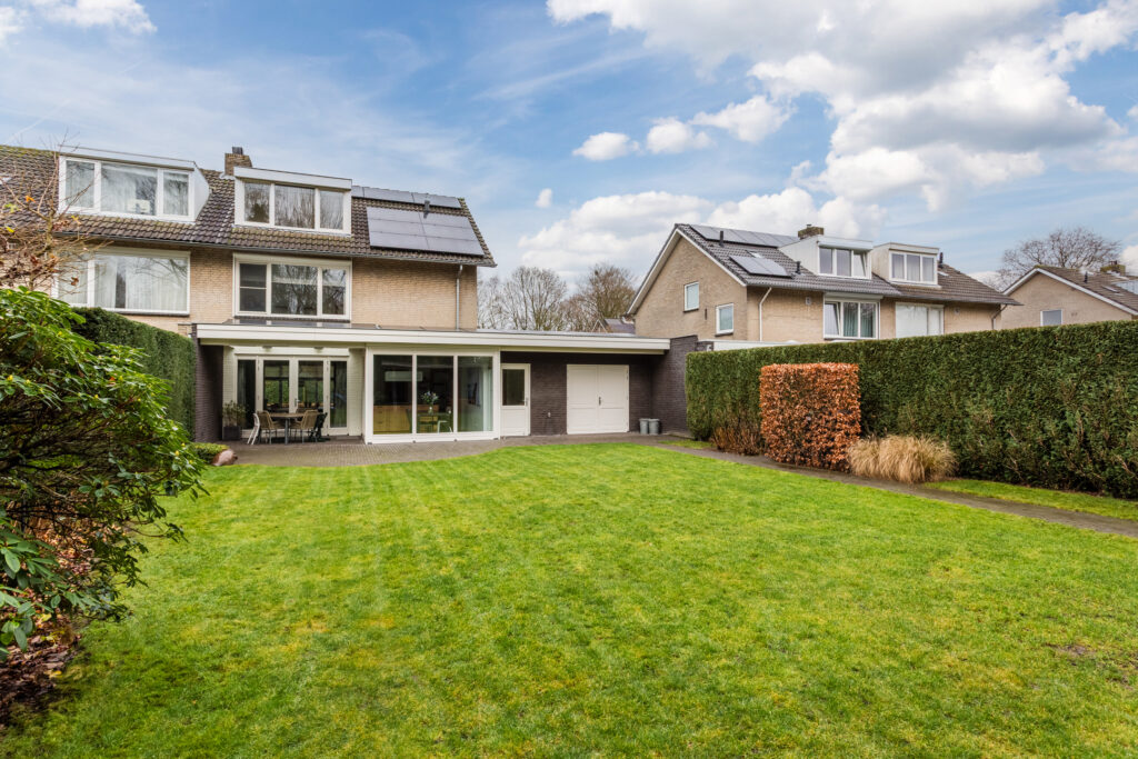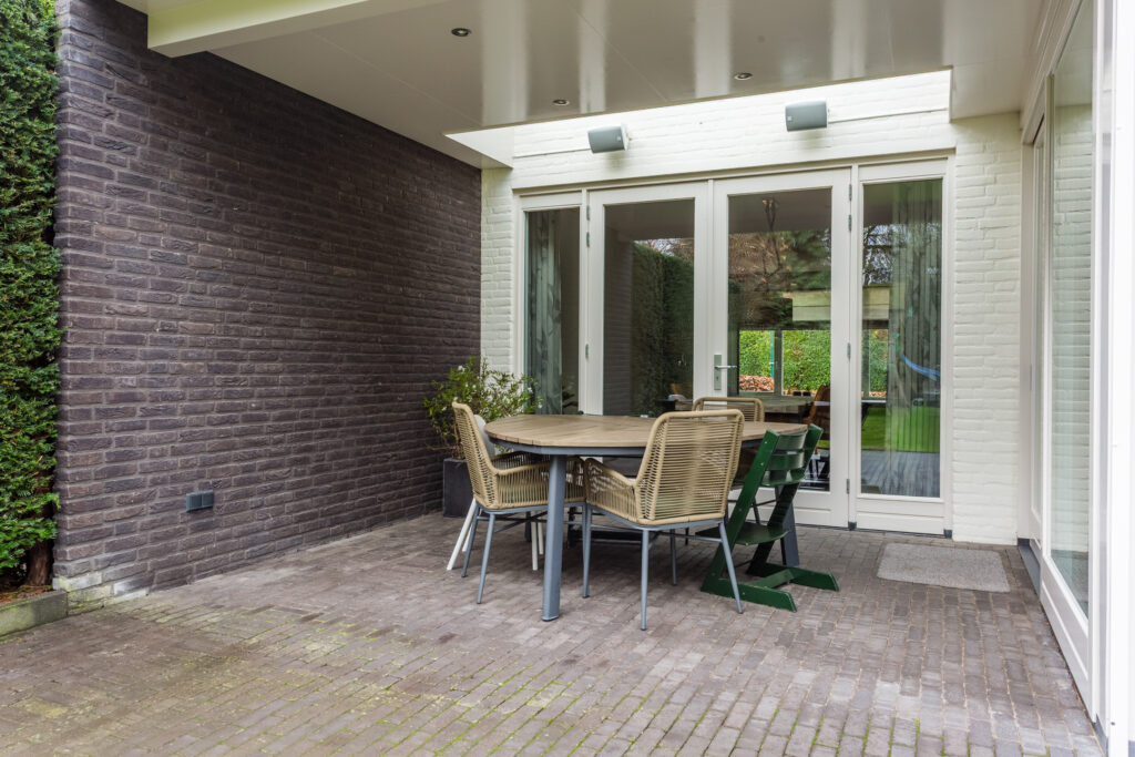 De woning beschikt over een unieke, circa 21 meter diepe achtertuin op het zuiden, die volop privacy en rust biedt. Dankzij het vele groen is dit een ware oase. Zowel direct bij de woning als achter in de tuin is een overdekt terras aanwezig, evenals een extra tuinberging, perfect om op elk moment van de dag van de zon of schaduw te genieten. Tevens is de tuin voorzien van een beregeningsinstallatie