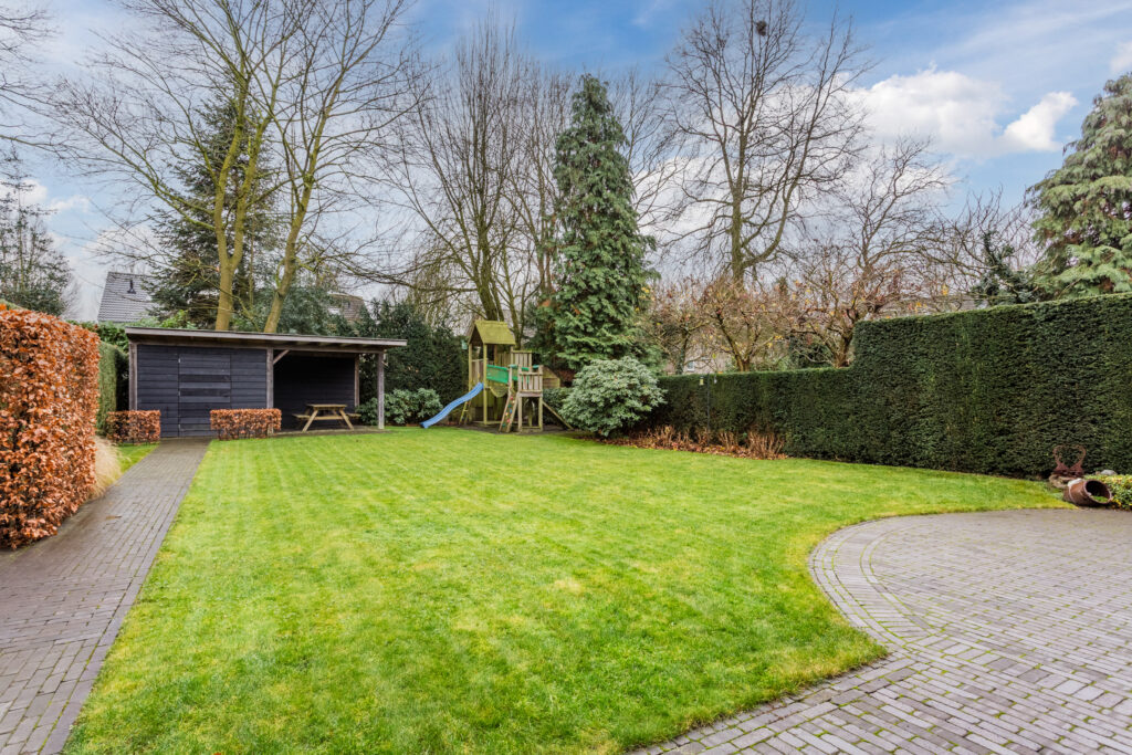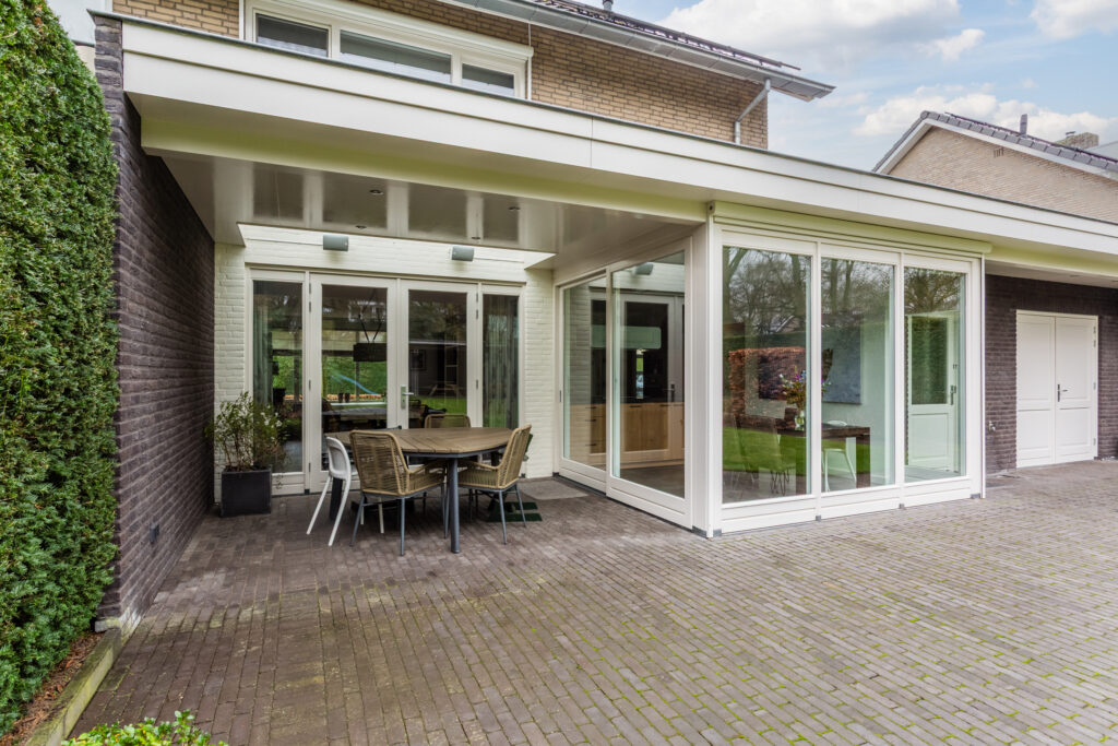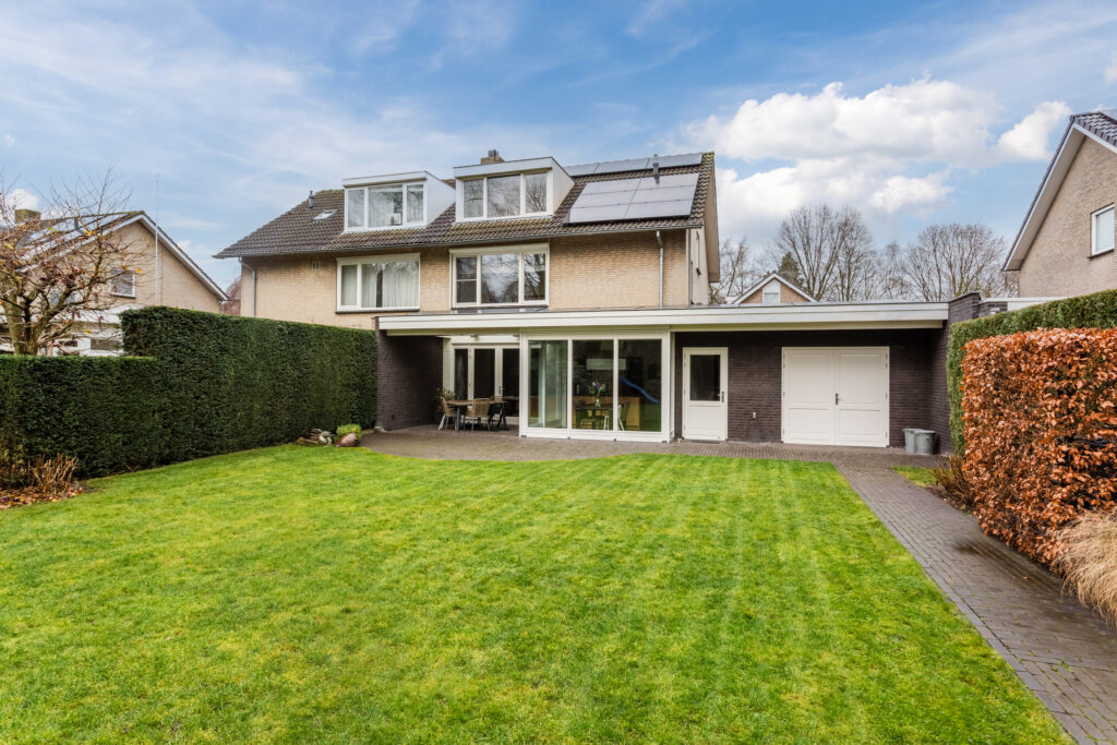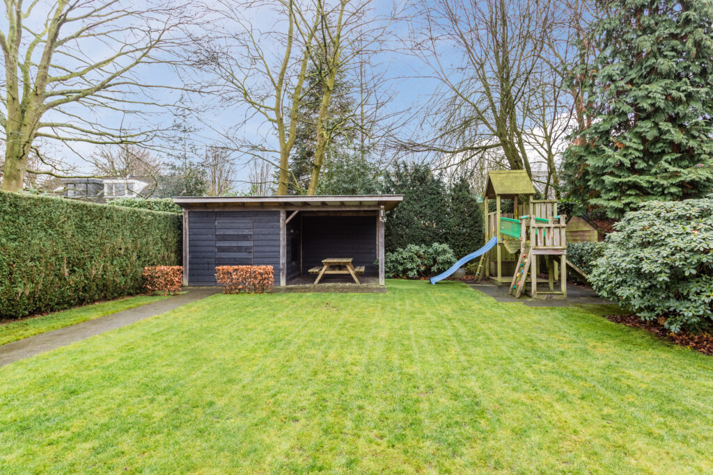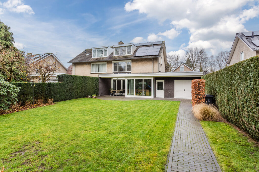 De woning beschikt over een unieke, circa 21 meter diepe achtertuin op het zuiden, die volop privacy en rust biedt. Dankzij het vele groen is dit een ware oase. Zowel direct bij de woning als achter in de tuin is een overdekt terras aanwezig, evenals een extra tuinberging, perfect om op elk moment van de dag van de zon of schaduw te genieten. Tevens is de tuin voorzien van een beregeningsinstallatie