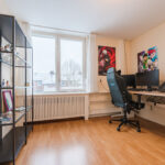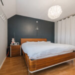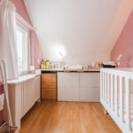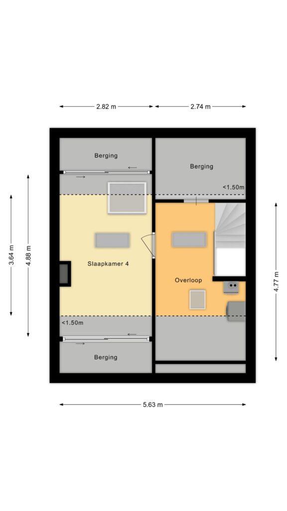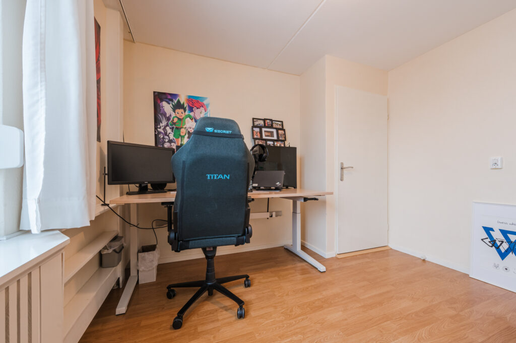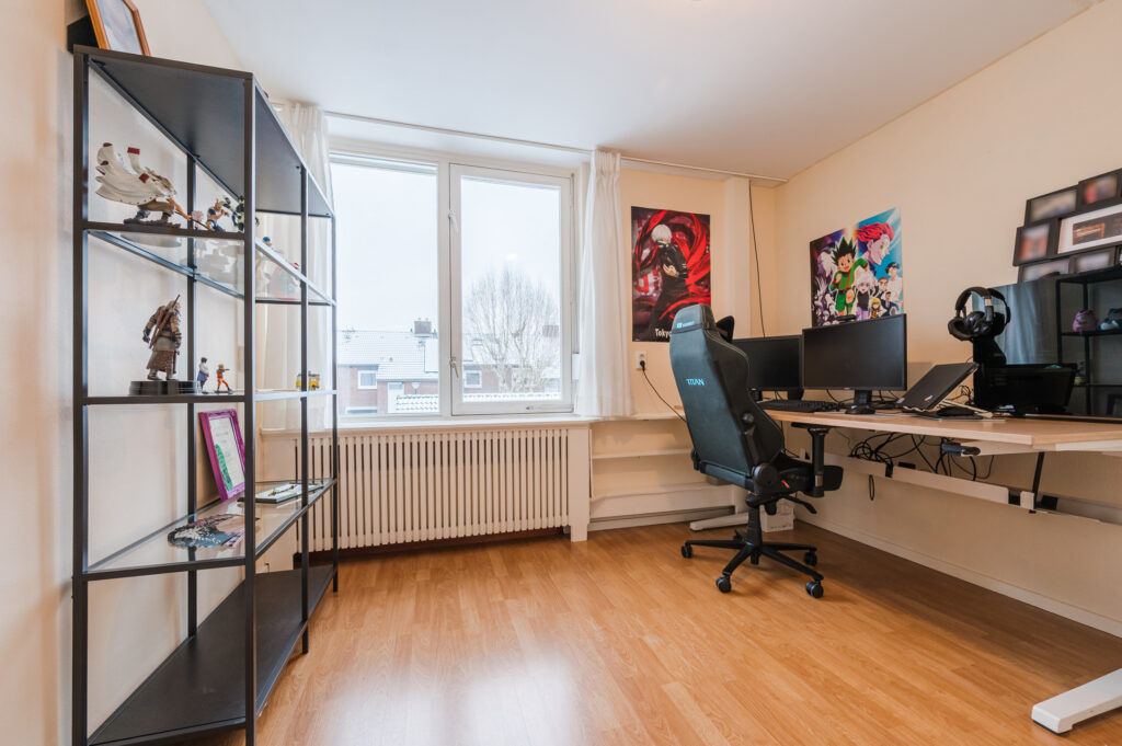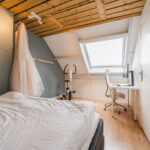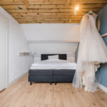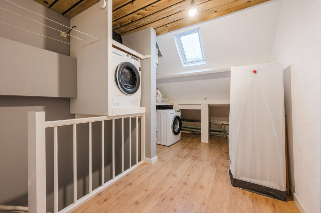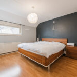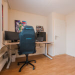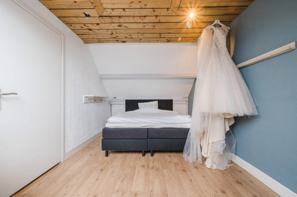 Via een vaste trap bereikt u de tweede verdieping met een royale voorzolder en de vierde slaapkamer. Ook hier ligt dezelfde laminaatvloer als op de eerste verdieping. Op de voorzolder bevinden zich de cv-installatie en de aansluitingen voor was- en droogapparatuur. Dankzij de knieschotten onder de kapschuiten is er volop bergruimte. De slaapkamer is voorzien van een groot dakvenster.