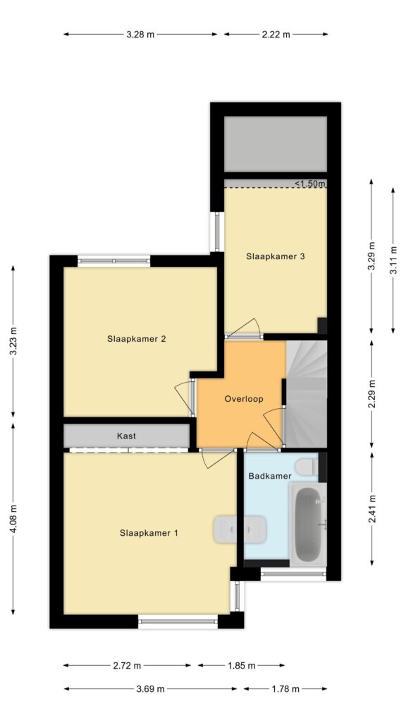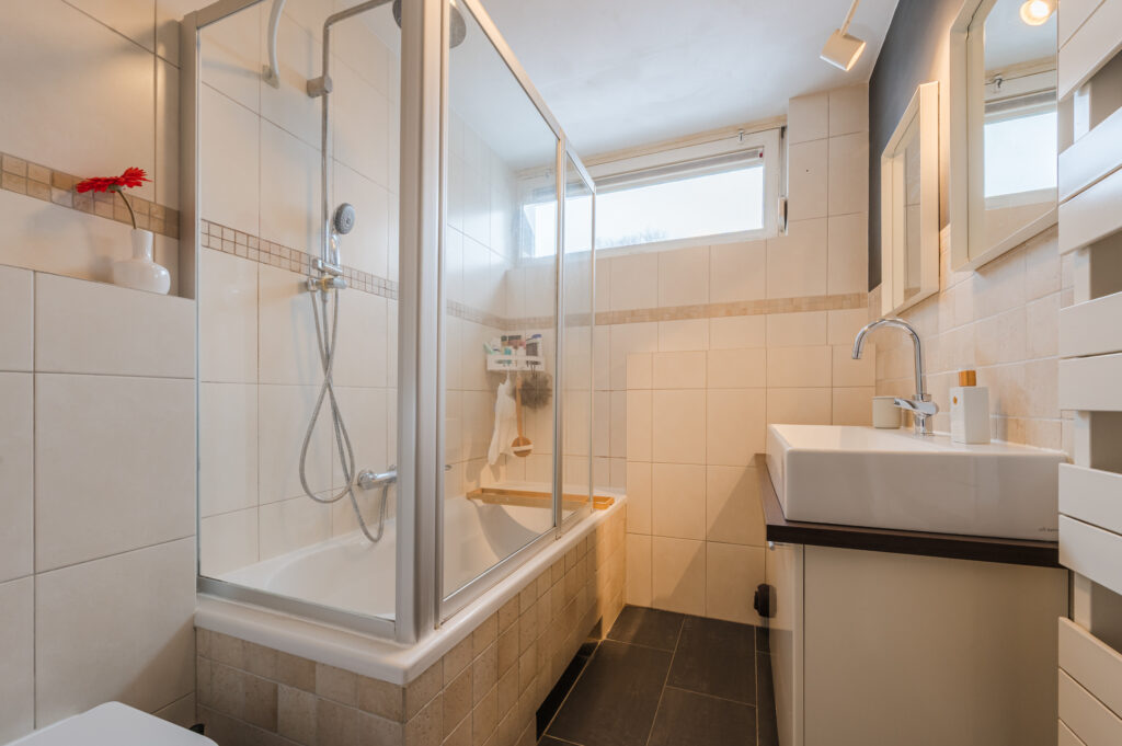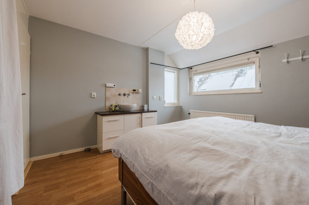 De overloop geeft toegang tot drie slaapkamers en de badkamer. De laminaatvloer is doorgelegd over de gehele verdieping. Alle slaapkamers zijn keurig afgewerkt en beschikken over grote raampartijen (voorzien van rolluiken) met veel lichtinval. De ouderslaapkamer is voorzien van een modern wastafelmeubel met vaste wastafel. De moderne badkamer is voorzien van een ligbad-/douchecombinatie, toilet en een stijlvol badkamermeubel met wastafel.