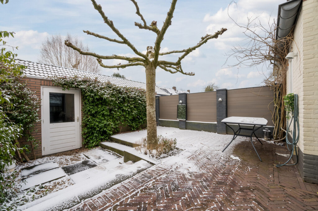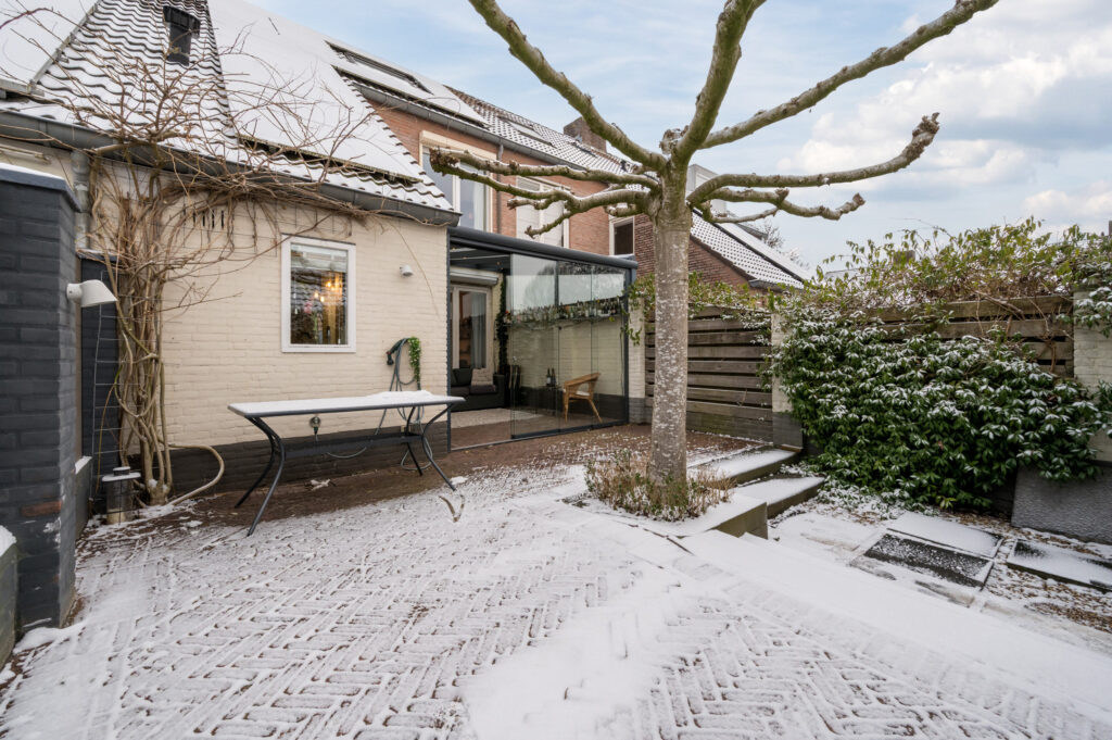 Aan de woning is een fraaie serre gerealiseerd, afsluitbaar met glazen panelen. Hier geniet u al vroeg in het voorjaar van de zon en kunt u lange zomeravonden heerlijk verlengen. De achtertuin is onderhoudsvriendelijk aangelegd met vaste beplanting en ligt gunstig op het zuidoosten. Achterin de tuin bevindt zich de vrijstaande garage met elektrische kanteldeur en bergvliering. Via een loopdeur bereikt u een verkeersluw pleintje. De aangrenzende berging is zowel vanuit de garage als vanuit de tuin toegankelijk.