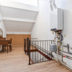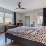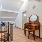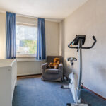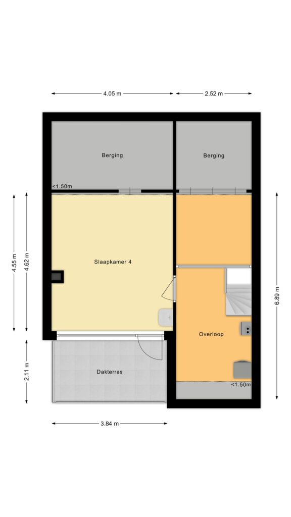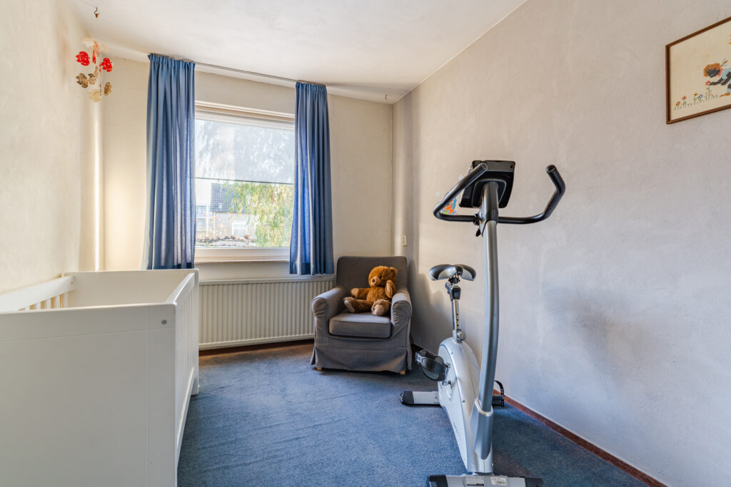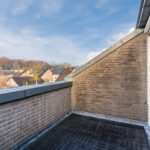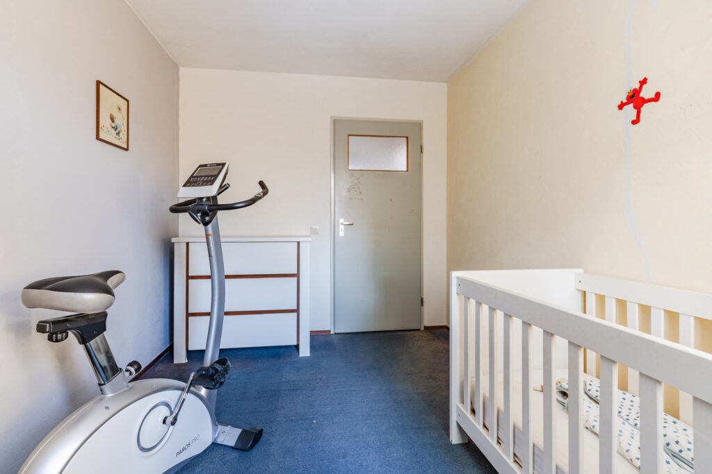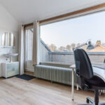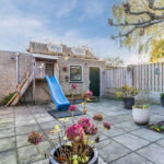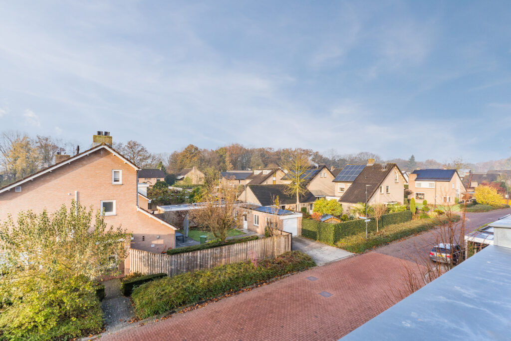 Middels een vaste trap te bereiken voorzolder met de opstelling van de Cv-installatie en de aansluitingen voor was- en droogapparatuur. Aansluitend is er een royale 4de (slaap)of hobbykamer te bereiken met een wastafel en een fijn dakterras op het zuidwesten. De ideale plek om hier rustig van de zon te kunnen genieten. Het raam van deze verdieping naar het zonneterras toe is voorzien van een zonnescreen. Over de hele verdieping zijn onder de kapschuiten praktische knieschotten gerealiseerd voor extra bergruimte.