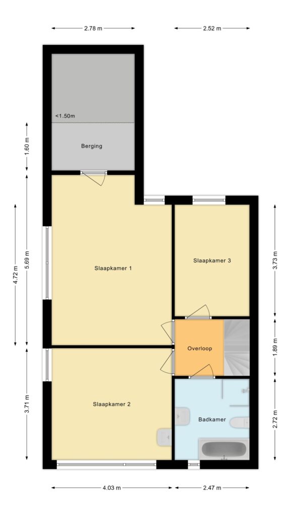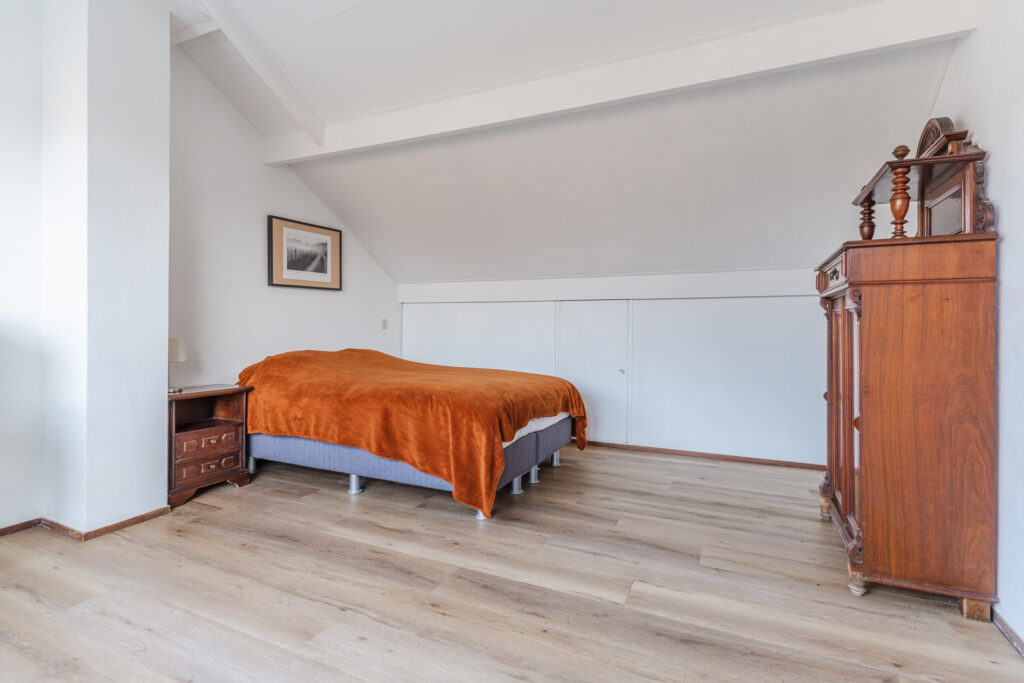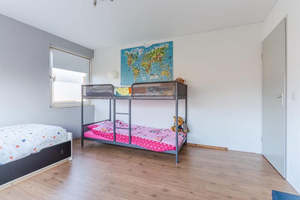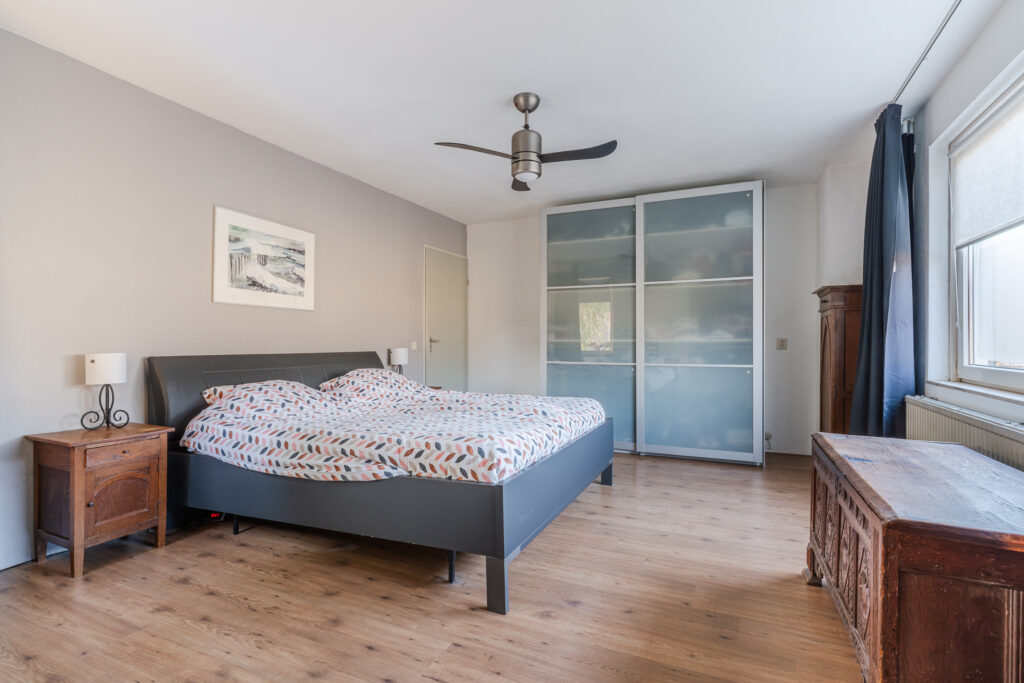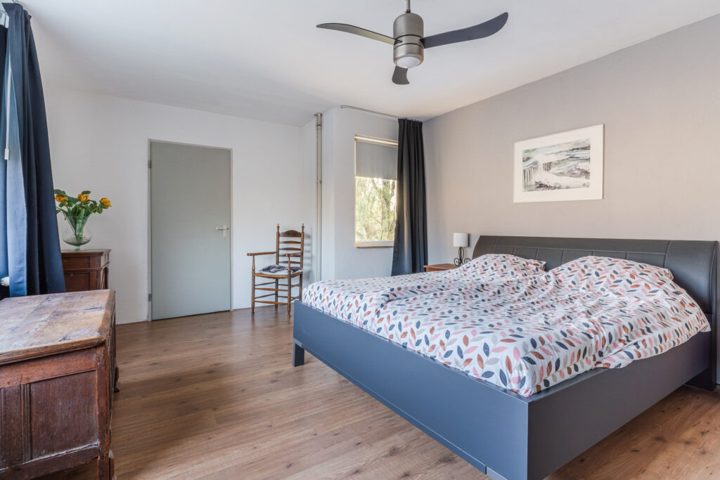 De overloop biedt toegang tot 3 slaapkamers en de badkamer. De slaapkamers zijn royaal van opzet en zijn netjes afgewerkt. De grote raampartijen zorgen voor een prettig lichtinval. Een van de slaapkamer biedt achter een deur nog een extra bergruimte voor extra opslagmogelijkheden. De verzorgde badkamer is voorzien van een ligbad, een inloopdouche met glazen douchedeuren, toilet en wastafel.