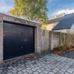 – Vrijstaande stenen garage met stalen kanteldeur aanwezig;